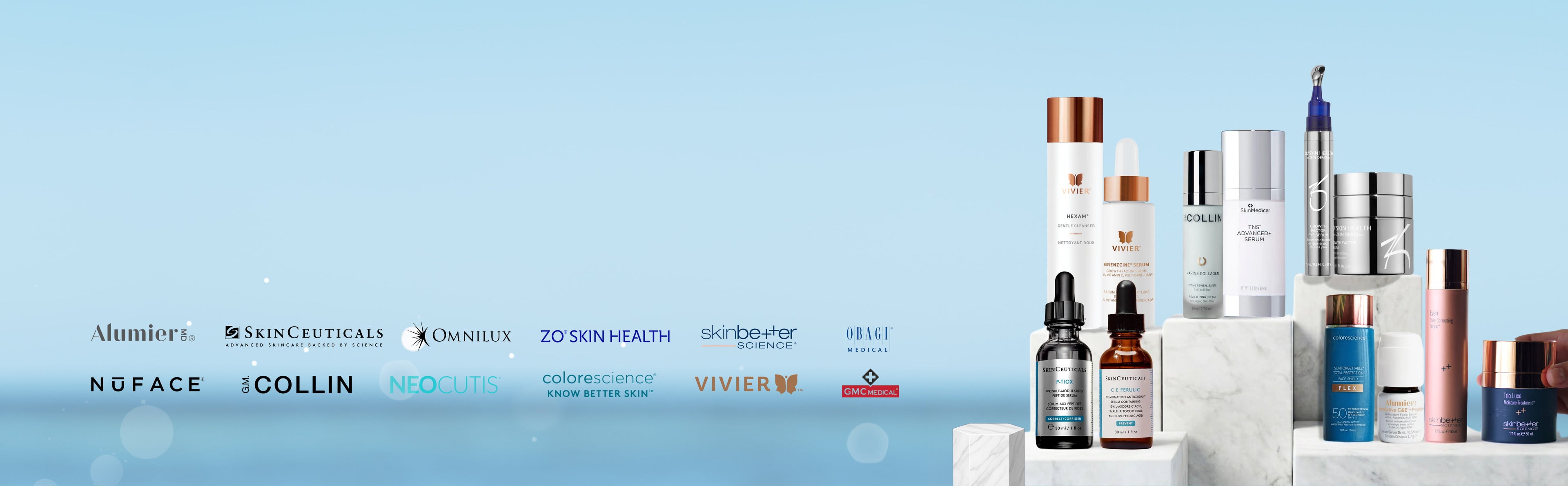 Yes. We carry Canadaโs leading medical-grade skincare brands including Vivier, ZO Skin Health, AlumierMD, Environ, PCA Skin, Neocutis, Colorescience, iS Clinical, Omnilux, NuFACE and more.