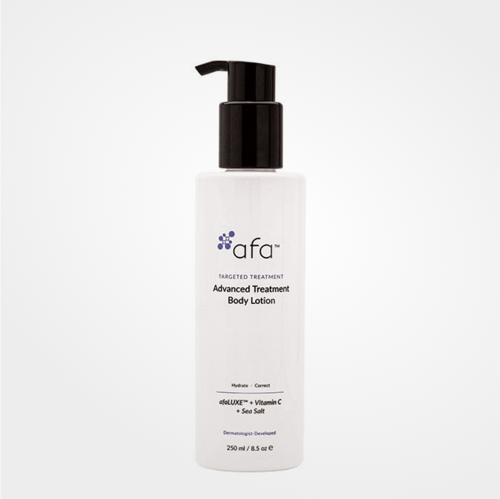 ® La lotion corporelle AFA Advanced Treatment aide à corriger le ton, la texture et la pigmentation, hydrate, améliore l’élasticité et traite les dommages causés par le soleil ainsi que les taches foncées avec afaLUXE™, la vitamine C et les minéraux de la mer Morte — idéale pour une utilisation après des traitements au laser.