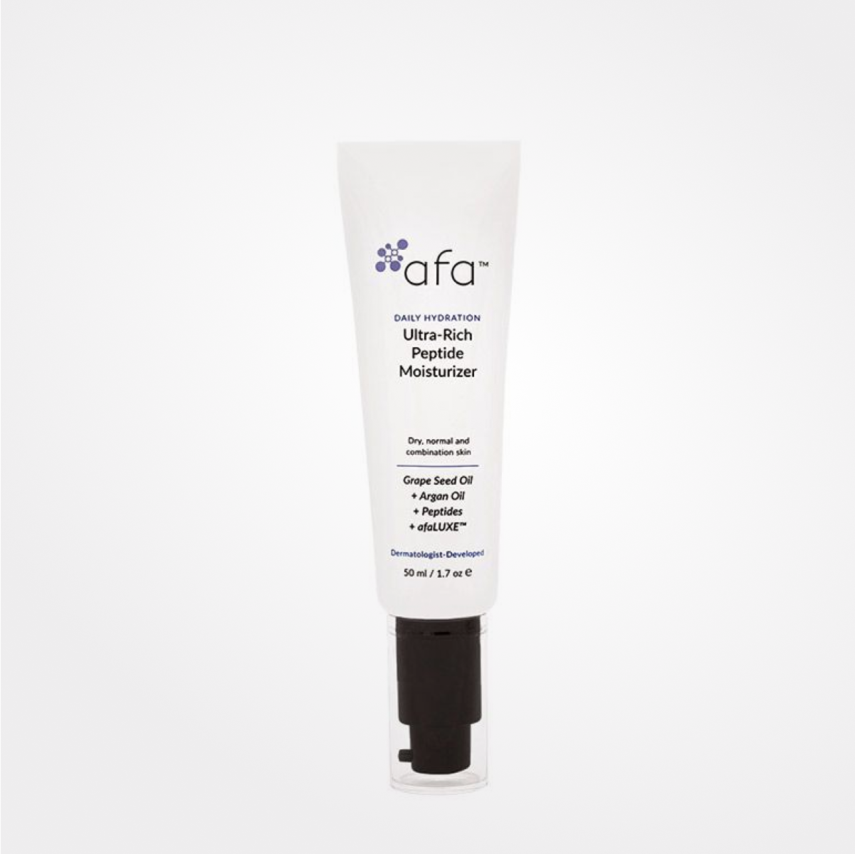 AFA Ultra-Rich Peptide Moisturizer est une formule puissante et restauratrice qui offre une hydratation essentielle durable pour améliorer la santé de la peau. Les peptides réparent les dommages cellulaires, tandis que l’huile d’argan nourrit et revitalise la peau. L’huile de grenade protège contre les radicaux libres et réduit l’inflammation, tandis que l’huile de pépins de raisin décongestionne les pores et minimise les ridules.
