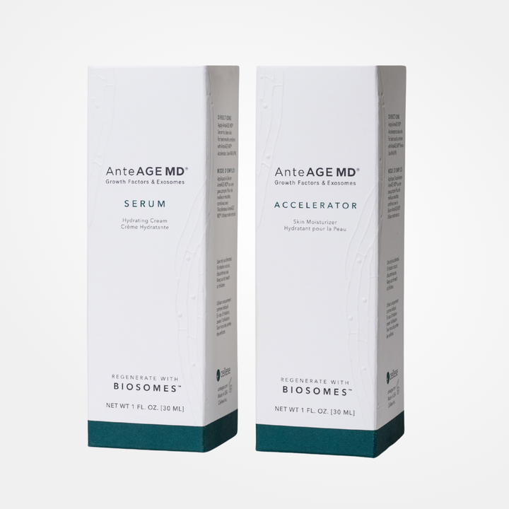 Le système complet AnteAGE MD est le protocole ultime en deux étapes pour le rajeunissement total de la peau. En combinant le sérum (facteurs de croissance) et l’accélérateur (actifs et support de barrière), vous créez un environnement synergique qui imite le pouvoir guérisseur de la peau jeune. Ce duo a été cliniquement prouvé pour réduire les ridules, améliorer la texture et calmer l’inflammation plus rapidement que l’utilisation seule.