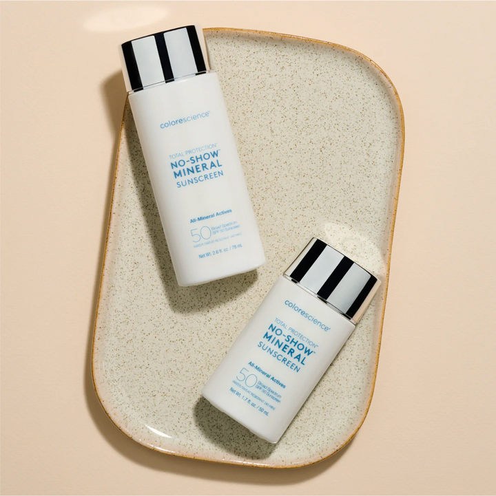 No-Show™ Mineral est la crème solaire la plus transparente, entièrement minérale, qui se fond dans la peau si bien qu’on en oublie sa présence.