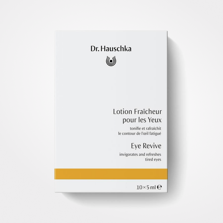Dr. Hauschka Eye Revive, en ampoules à dose unique, utilise des extraits de plantes médicinales comme eyebright, fenouil, camomille et thé noir pour rafraîchir et apaiser les yeux fatigués et qui démangent, offrant un soulagement rafraîchissant à toutes les affections cutanées et porteurs de lentilles cornéennes.
