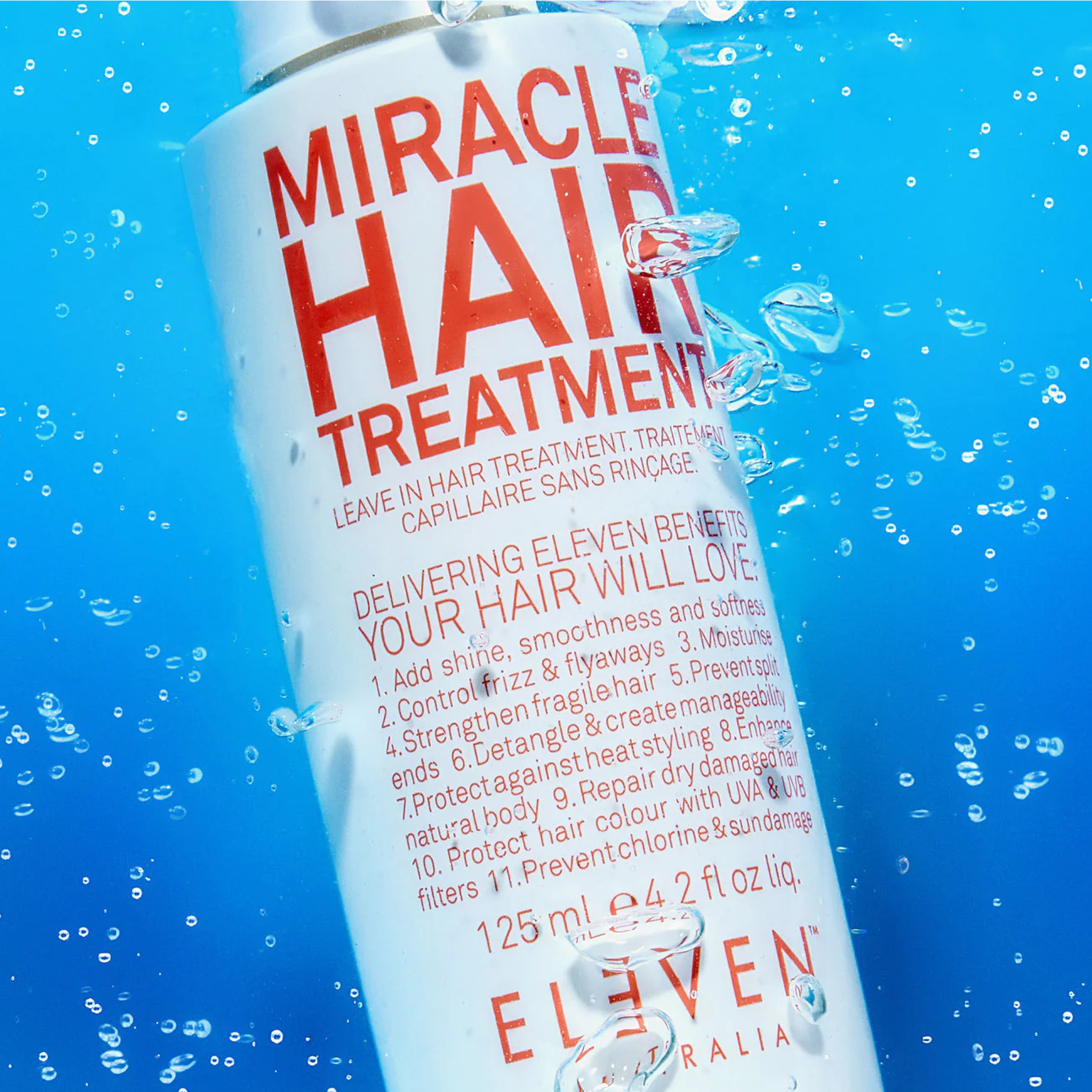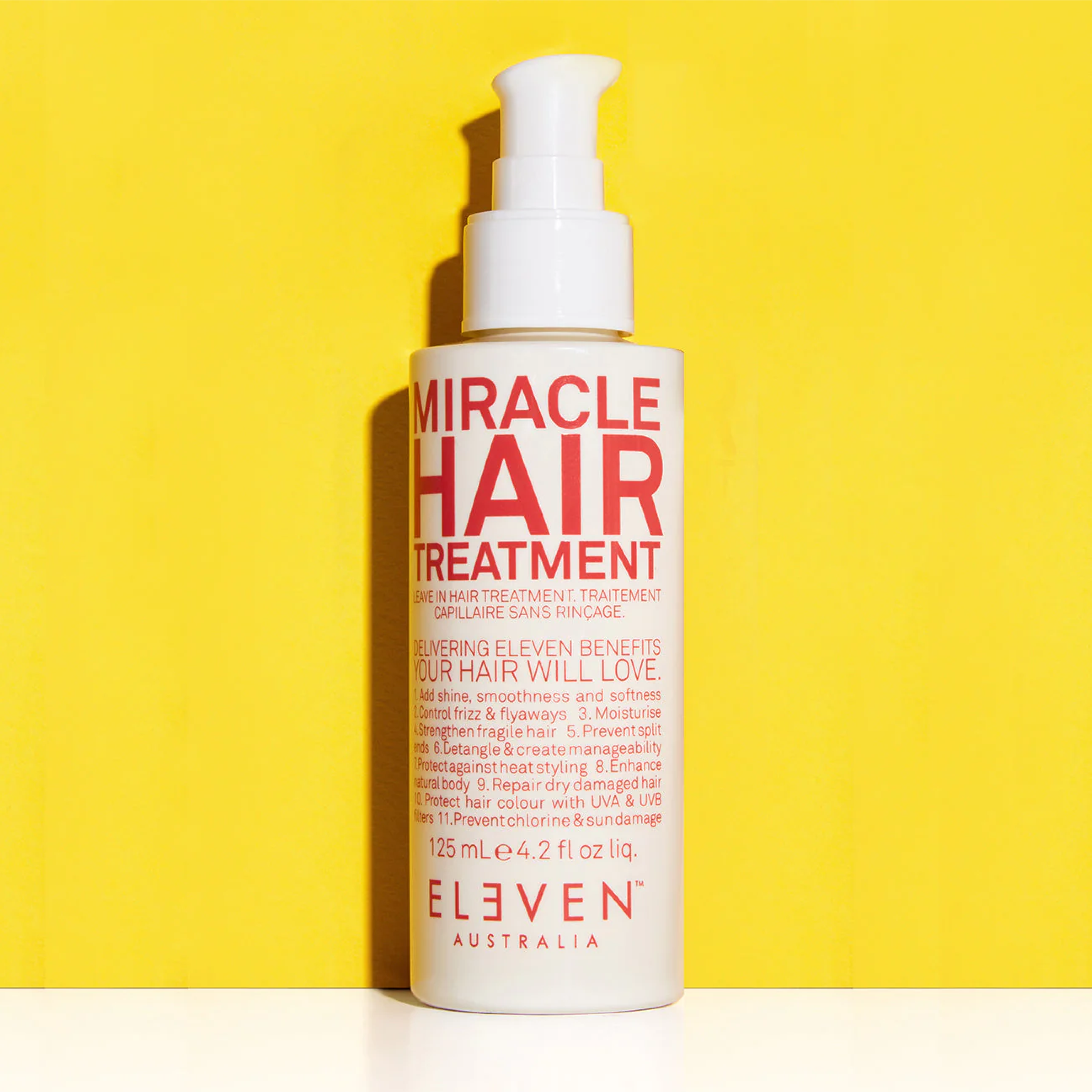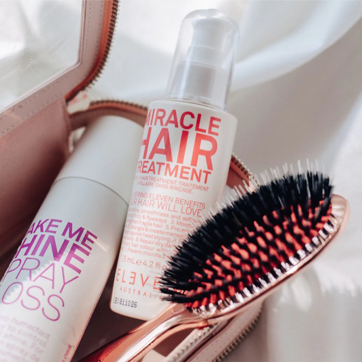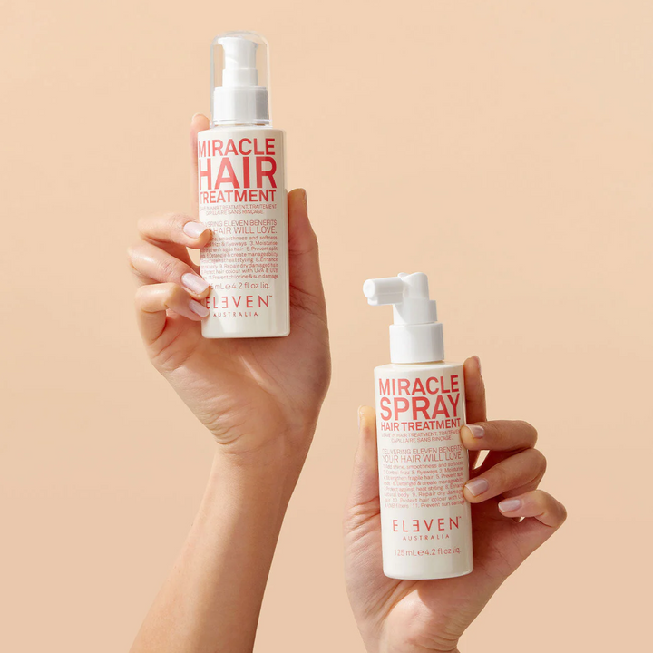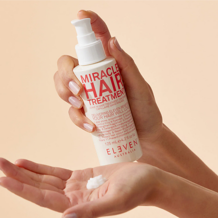 MIRACLE HAIR TREATMENT est une crème sans rinçage multitâche qui offre 11 bienfaits en un seul — ajoutant brillance, douceur et maniabilité tout en protégeant contre la chaleur, les rayons UV et les dommages environnementaux.