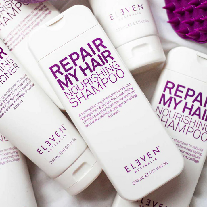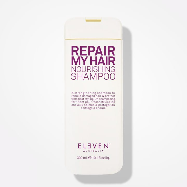 ELEVEN Australie Le shampooing nourrissant Repair My Hair renforce et restaure les cheveux abîmés tout en protégeant contre la chaleur et la casse — parfait pour les cheveux colorés ou coiffés à la chaleur.