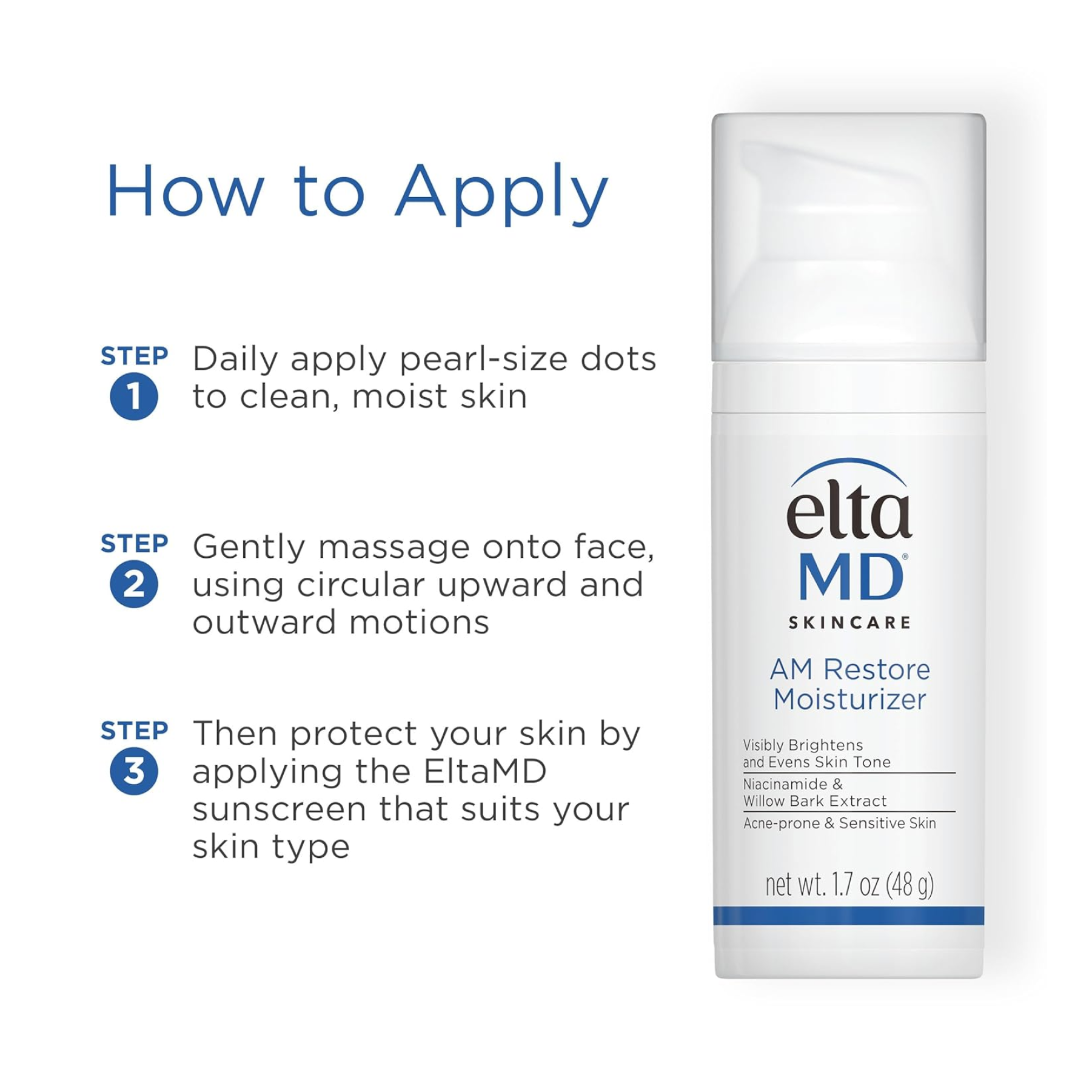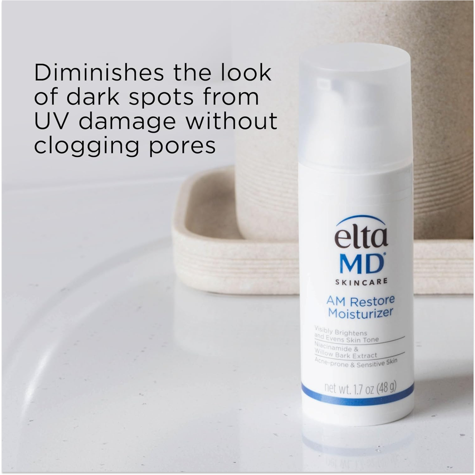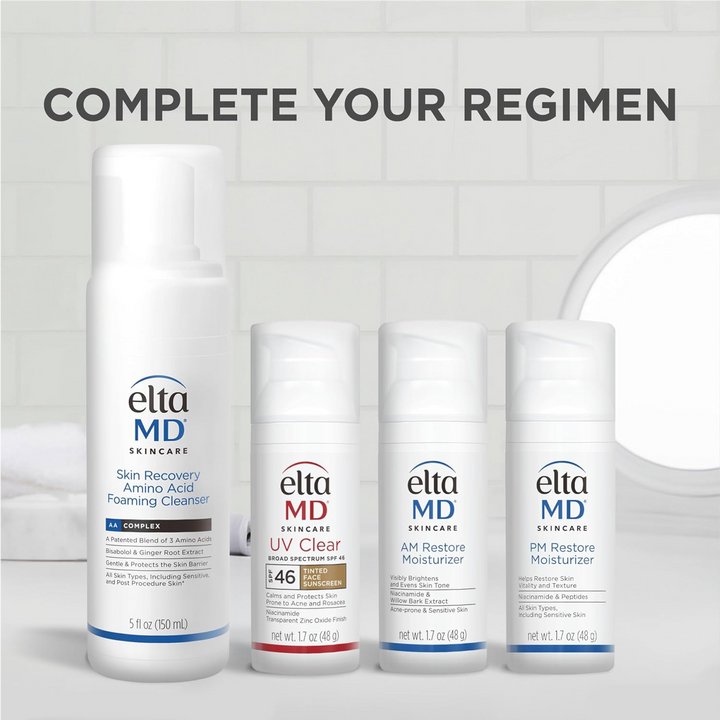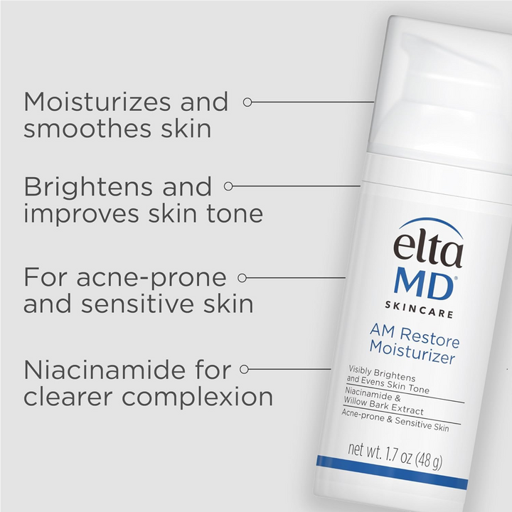L’hydratant EltaMD AM Restore hydrate et renforce la barrière de la peau pour uniformiser le teint et réduire l’apparence des taches de vieillesse, laissant la peau visiblement plus lisse et éclatante.