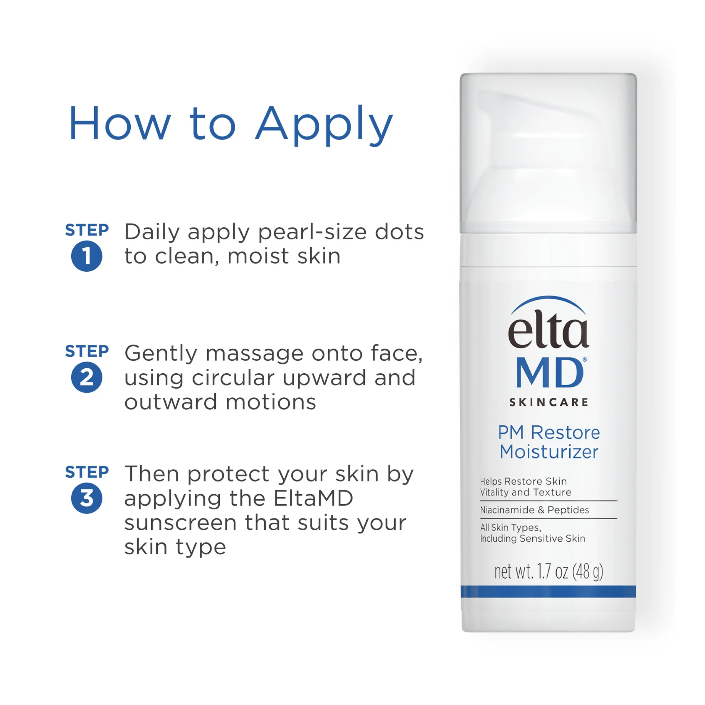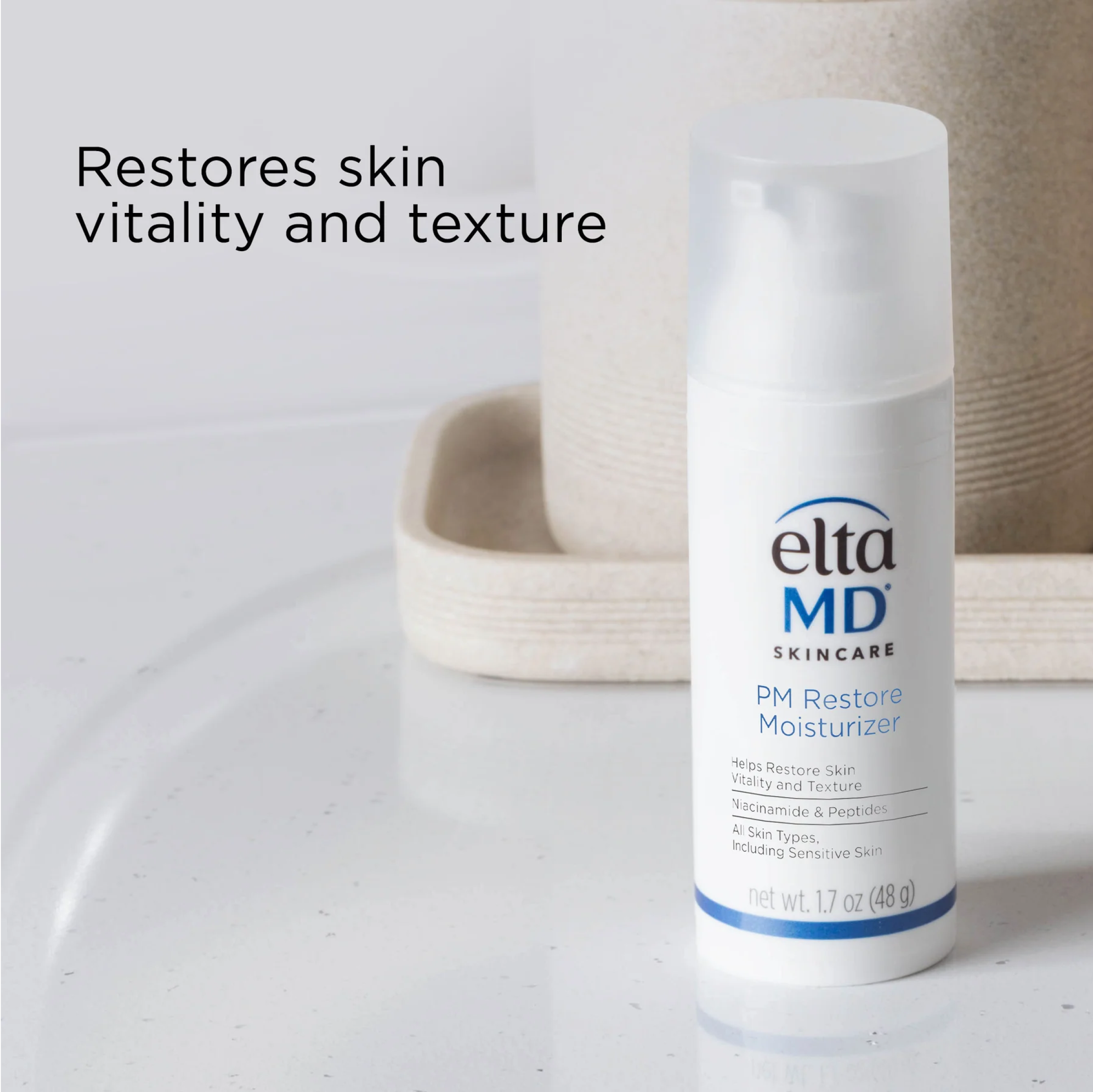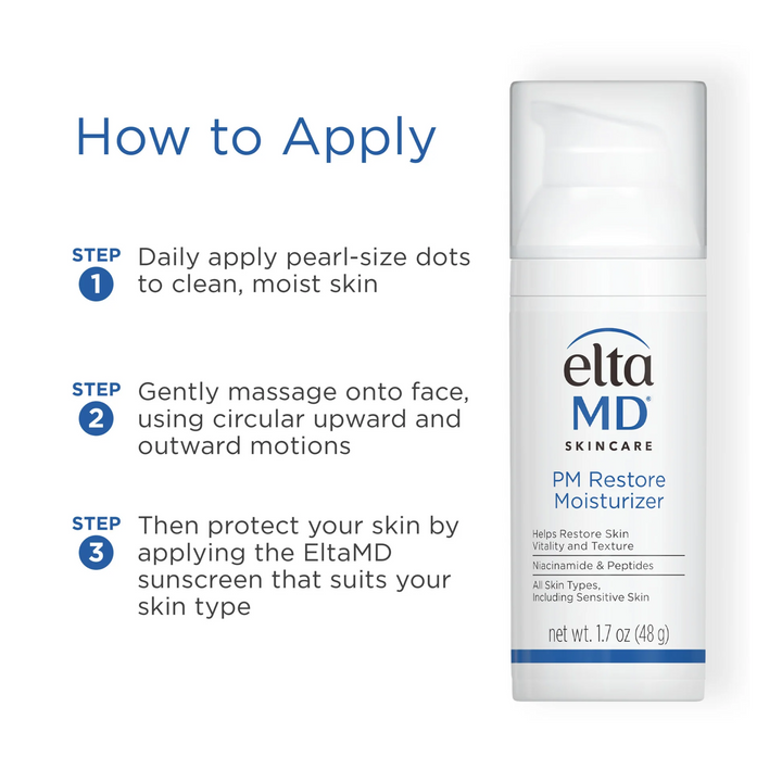 L’hydratant EltaMD PM Restore agit pour restaurer la peau au repos.