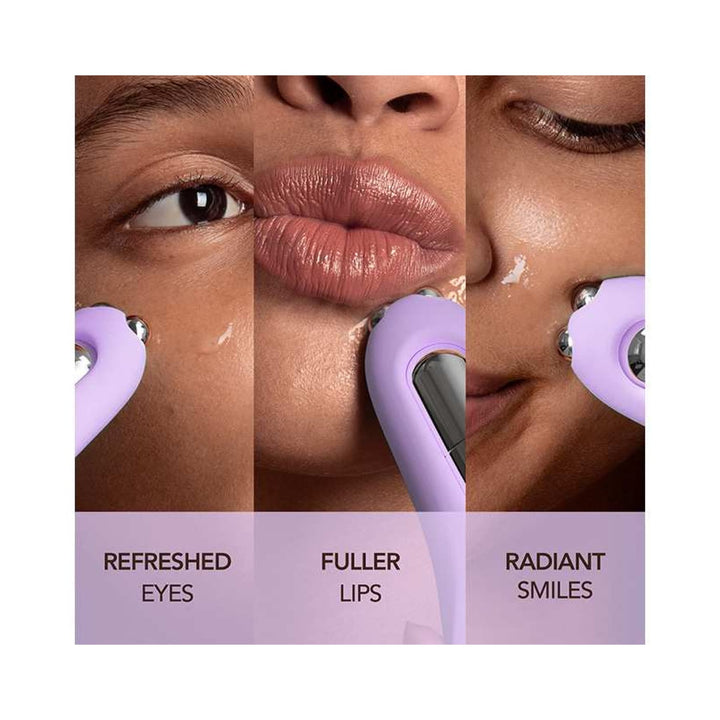 La combinaison du microcourant et du massage T-Sonic™ stimule la circulation, ajoutant du volume aux lèvres et minimisant les creux sous les yeux.
