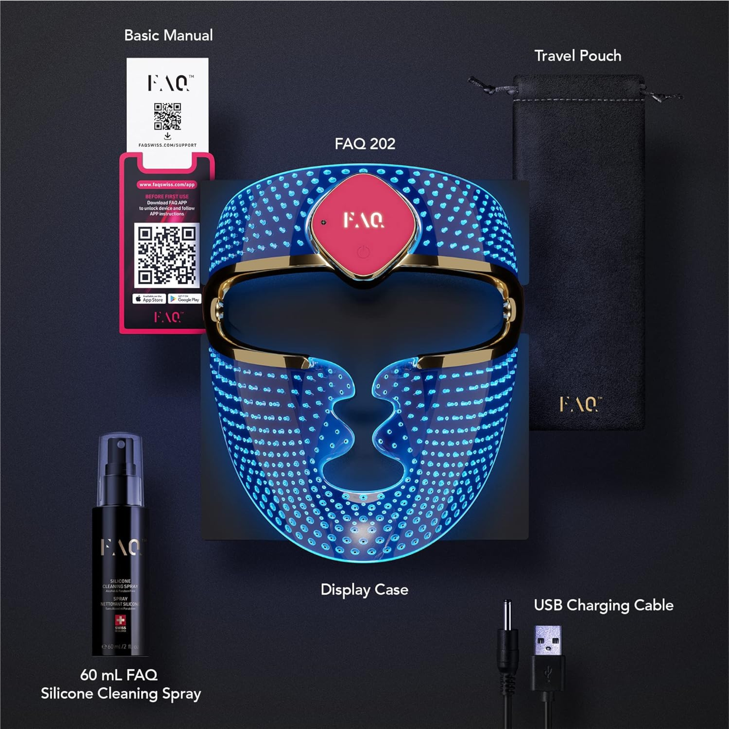 - FAQ™ 201 Masque facial à DEL en silicone