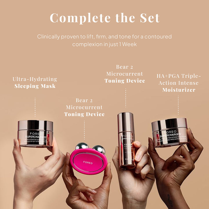 Vivez une radiance intemporelle avec cette formule luxueuse qui préserve la jeunesse, combinant acide hyaluronique, électrolytes, céramides et squalane pour raffermir, renouveler et renouveler votre peau. Spécialement conçu pour être utilisé avec les dispositifs microcourants de FOREO, le sérum FOREO SUPERCHARGED™ 2.0 améliore vos traitements technologiques de la peau, augmentant significativement la production de collagène, augmentant l’hydratation et délivrant une puissante infusion anti-âge. Grâce à son complexe électrolytique amélioré, ce sérum optimise la conductivité des microcourants pour des résultats encore meilleurs.