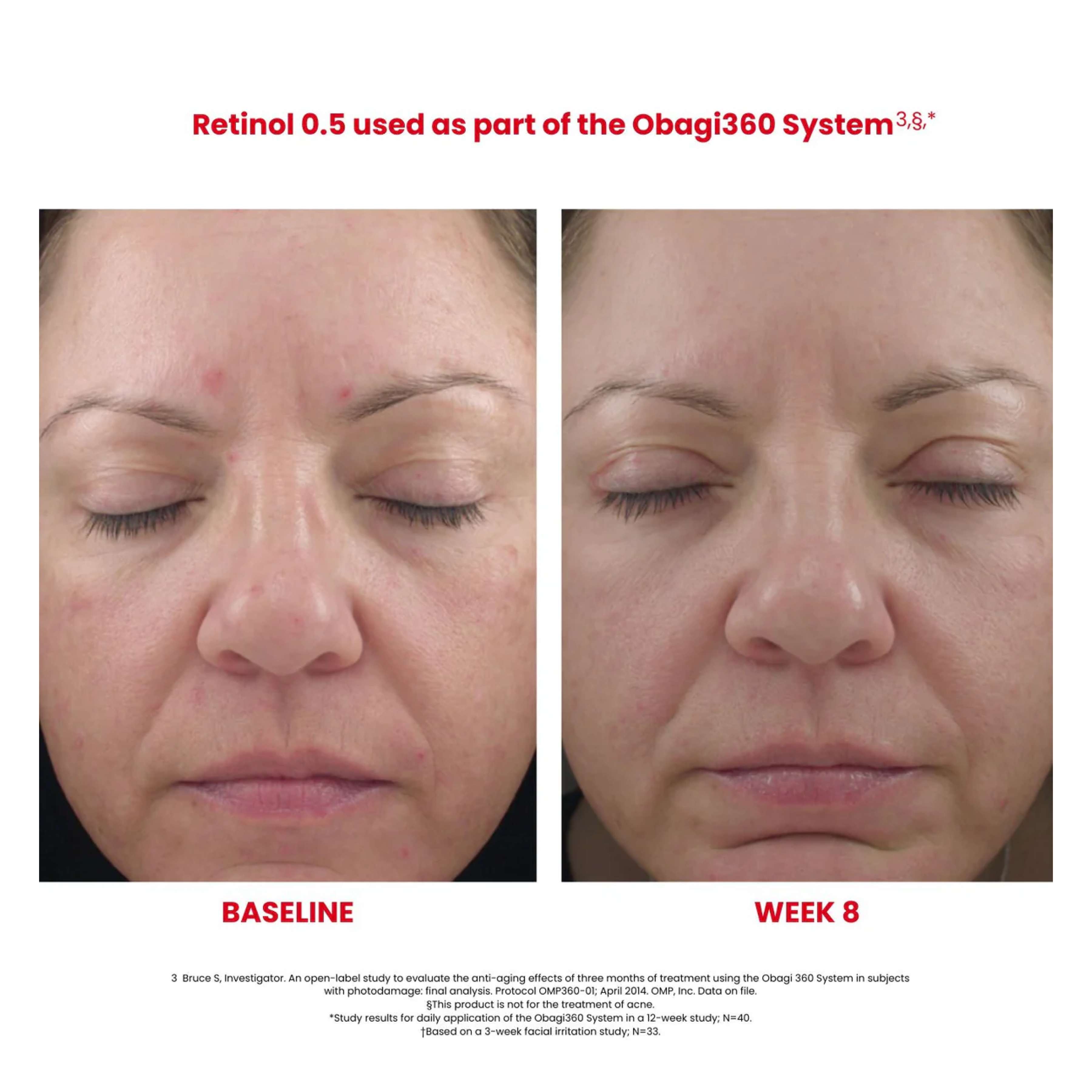 Obagi360® Retinol 0.5 est une crème professionnelle à libération lente au rétinol contenant 0,5% de rétinol pur dans un système de délivrance piégée. Conçu pour soutenir doucement mais efficacement le renouvellement de la peau, ce traitement avancé libère graduellement des ingrédients actifs pour aider à lisser visiblement les ridules fines et rides, affiner la texture inégale de la peau, atténuer la décoloration et restaurer l’éclat, tout en minimisant le risque d’irritation souvent associé aux formules de rétinol plus fortes.