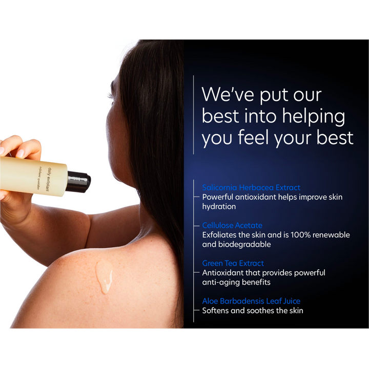 - Contient des exfoliants 100% biodégradables et renouvelables