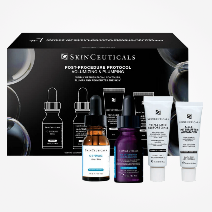 Ce protocole SkinCeuticals Volumizing & Plumping post-procédure aide à optimiser la récupération, à améliorer l’hydratation, à améliorer le volume du visage et à améliorer les résultats du traitement.