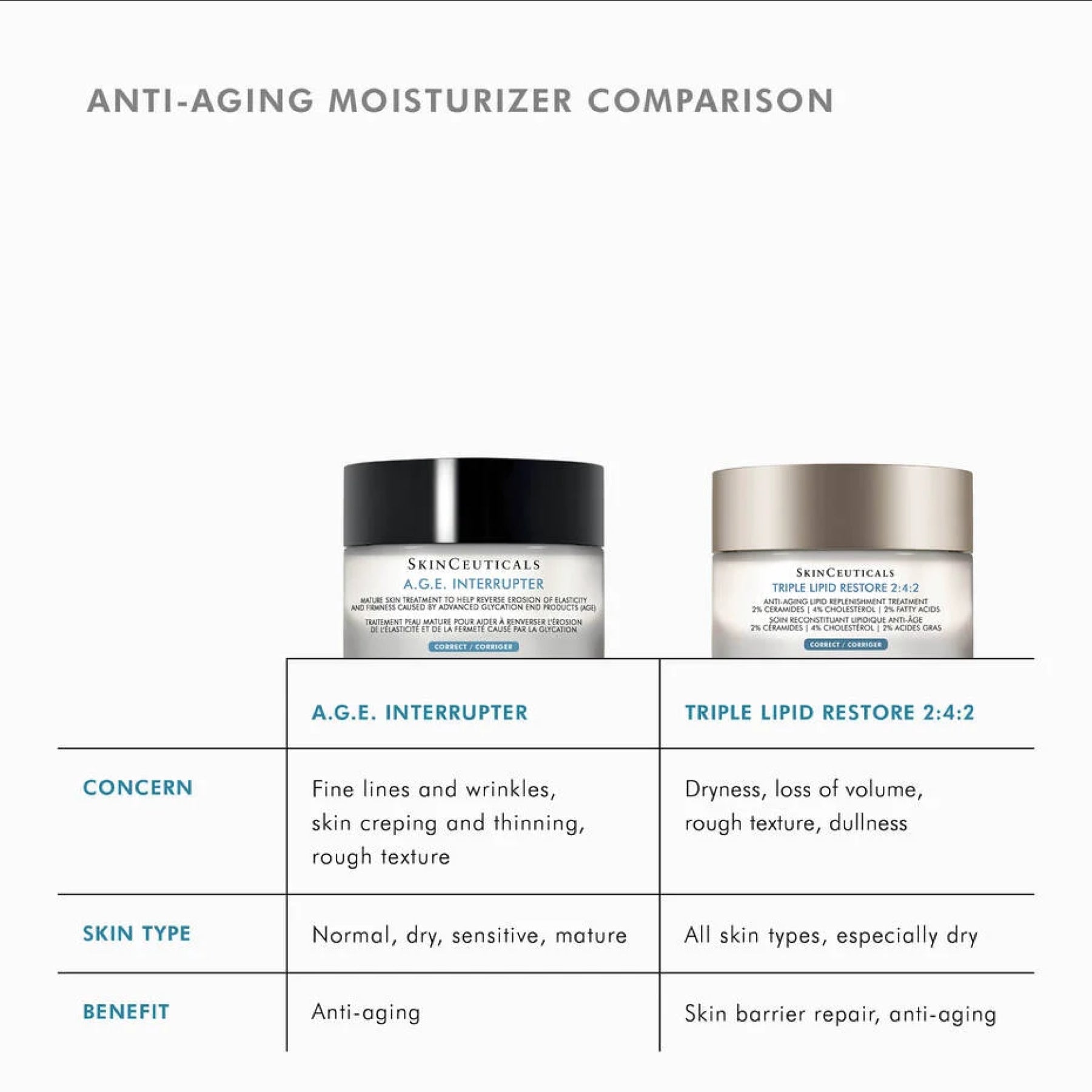 Triple Lipid Restore 2:4:2 est un hydratant anti-âge breveté, idéal pour les peaux sèches, déshydratées et vieillissantes, aidant à restaurer la barrière cutanée tout en améliorant la fermeté, la douceur et l’éclat.