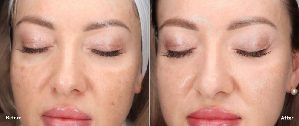 Préoccupations cutanées : Hyperpigmentation modérée à sévère, taches foncées, tonalité inégale, mélasma, dommages causés par le soleil, manque de radiance