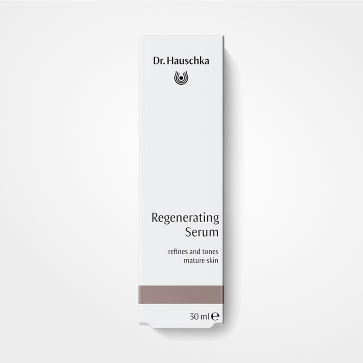 The Dr. Hauschka regenerating skin care range leaves the skin looking and feeling noticeably smoother and firmer, with the Regenerating Serum specifically designed to support and revitalize mature skin by minimizing the appearance of fine lines and wrinkles through its formulation of quince seed, kalanchoe, red clover, clover blossom honey, which protect and smooth the skin while supporting its moisture balance, resulting in fortified and balanced skin for a smoother complexion.