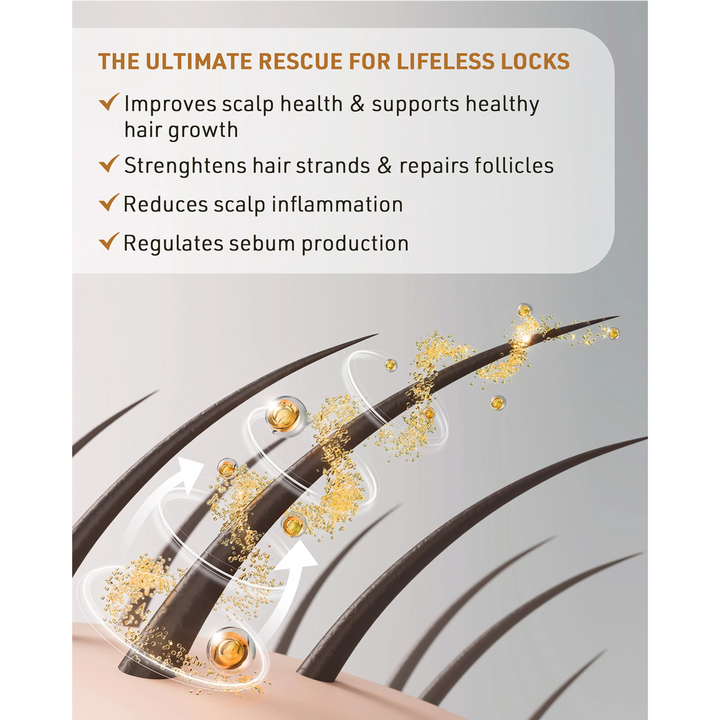 - Helps to strengthen hair strands and repair follicles, reducing breakage and thinning.