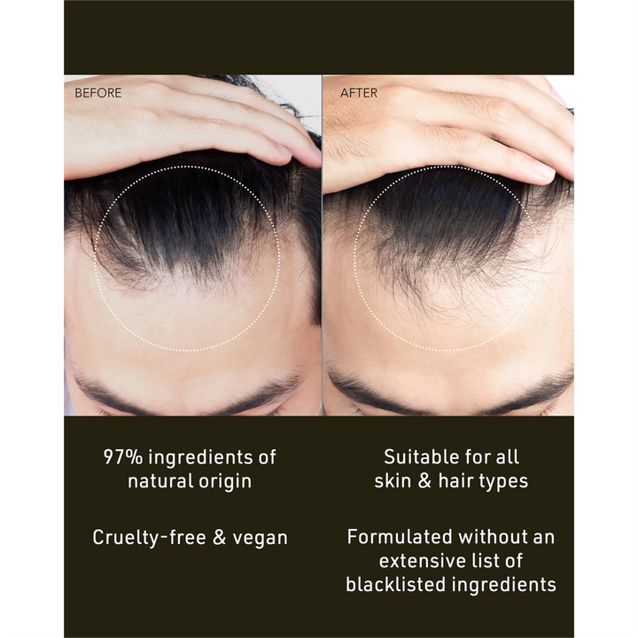 - Balances the scalp microbiome, to improve overall scalp health and support healthy hair growth.