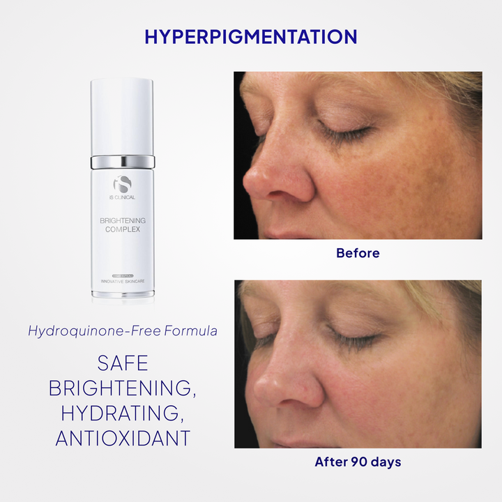 Brightening Complex by iS Clinical is a safe, hydroquinone-free formula that effectively brightens and moisturizes skin with proprietary ingredients and pharmaceutical-grade botanicals.