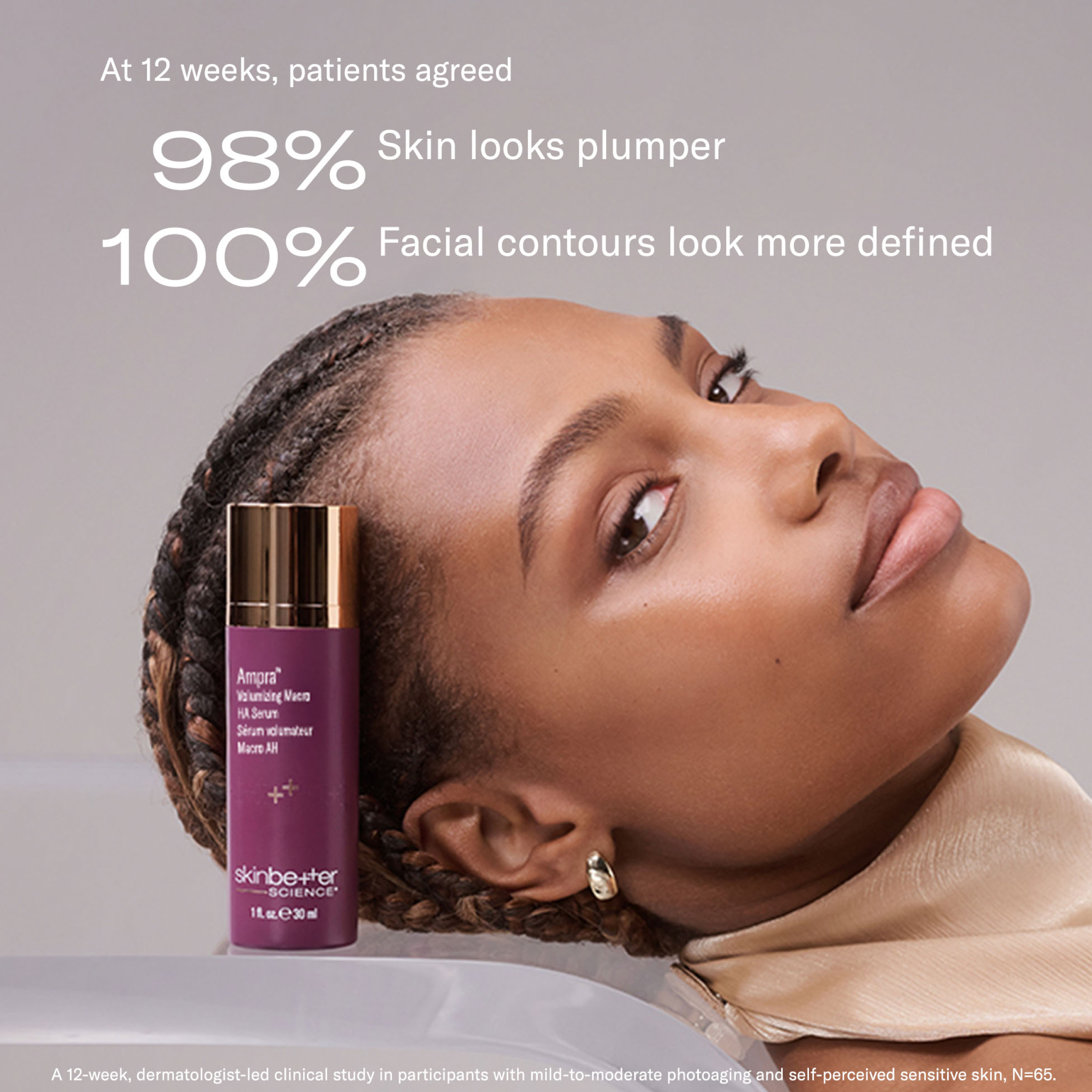 Skin Concerns: Loss of volume, fine lines, wrinkles, dehydration, dullness, texture irregularities