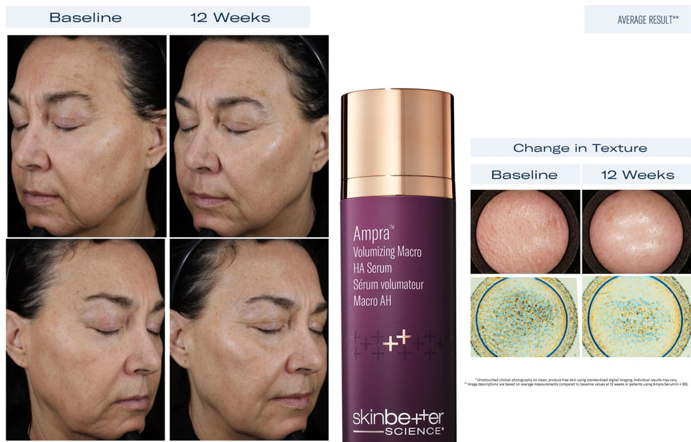 Experience the future of hyaluronic acid with breakthrough innovation from Skinbetter Science. Ampra Volumizing Macro HA Serum redefines traditional hydration by delivering clinically proven volumizing, smoothing, and rejuvenating benefits at a structural level.