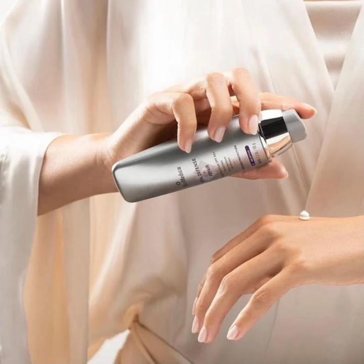 Total Defense + Repair is a rejuvenating superscreen powered by SOL-IR™ Advanced Antioxidant Complex. Unlike traditional sunscreens that only shield against UVA and UVB rays, this innovative formula provides comprehensive protection against infrared (IR-A) exposure, helping to prevent premature aging and preserve the skin's moisture barrier.